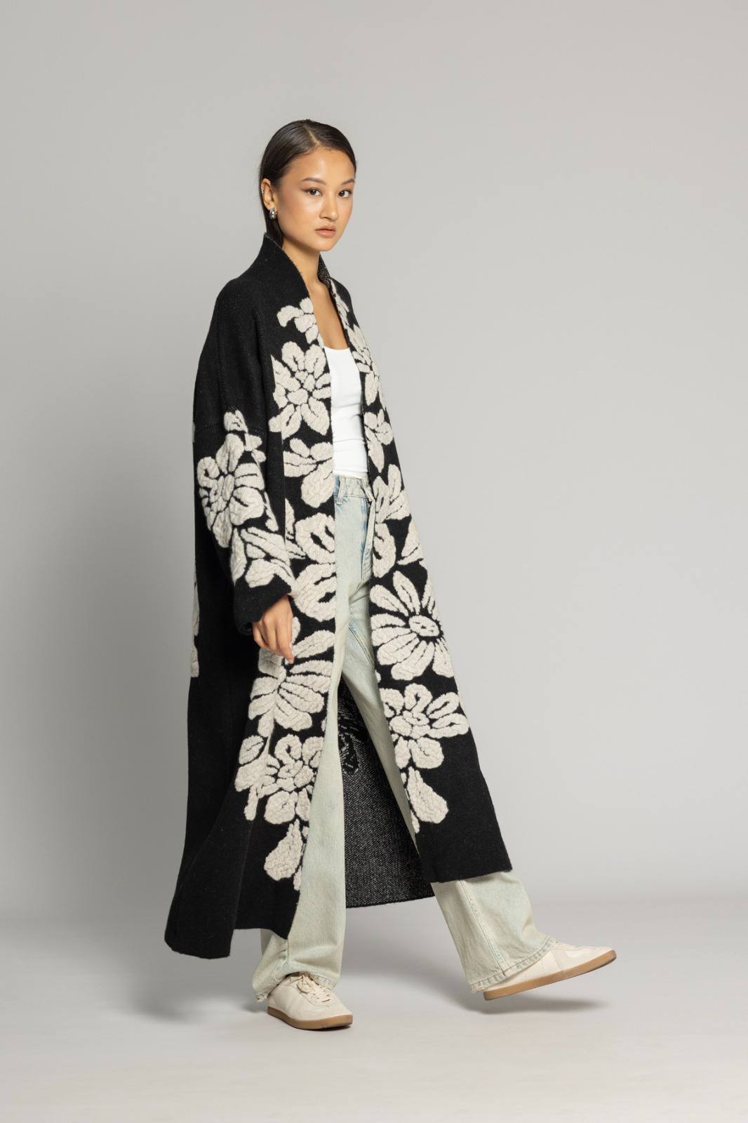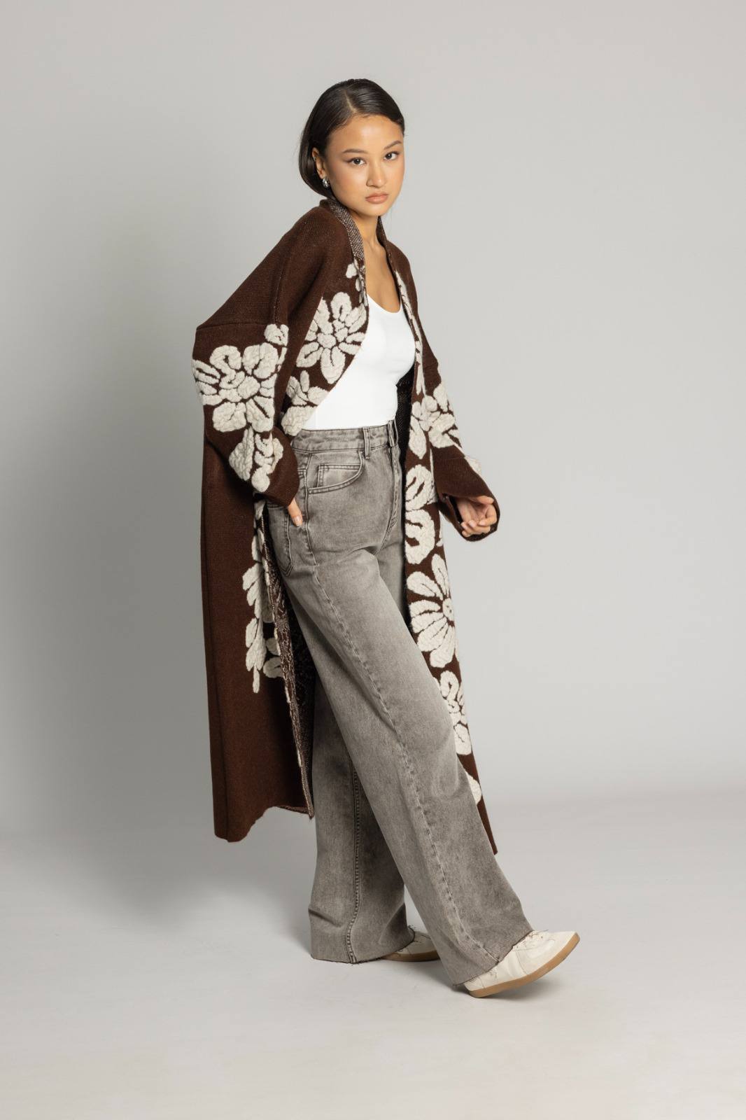 Zarafet ve konforun mükemmel birleşimi olan bu premium triko hırka, gardırobunuzun vazgeçilmez parçası olmaya aday. Göz alıcı çiçek desenleri ve oversize kesimi ile hem şık hem de rahat bir görünüm sunar.